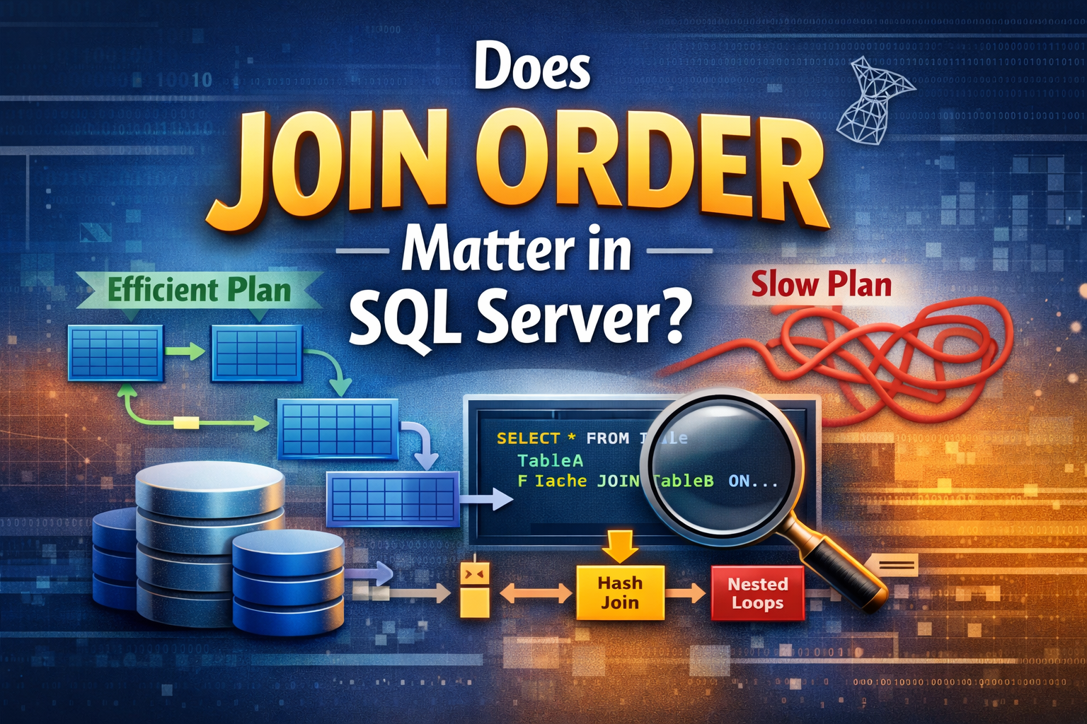For inner joins, SQL Server’s optimizer is generally free to reorder joins because they are logically commutative and associative. However, that freedom is not absolute and can be constrained by factors such as join hints, query shape, cardinality estimation errors, and the optimizer’s internal search-space pruning.